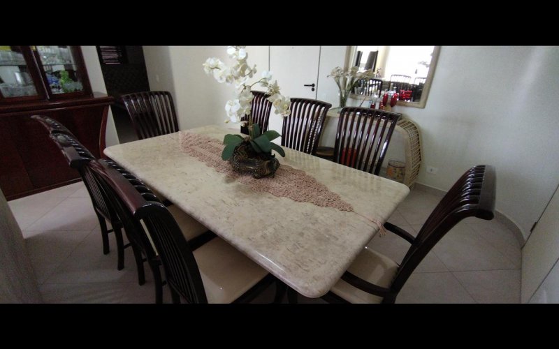 2 dormitórios (1 suíte) + dormitório de empregada, banheiro social, sala para 2 ambientes com varanda, copa cozinha com armários, área e banheiro de serviço, garagem, mobiliado.