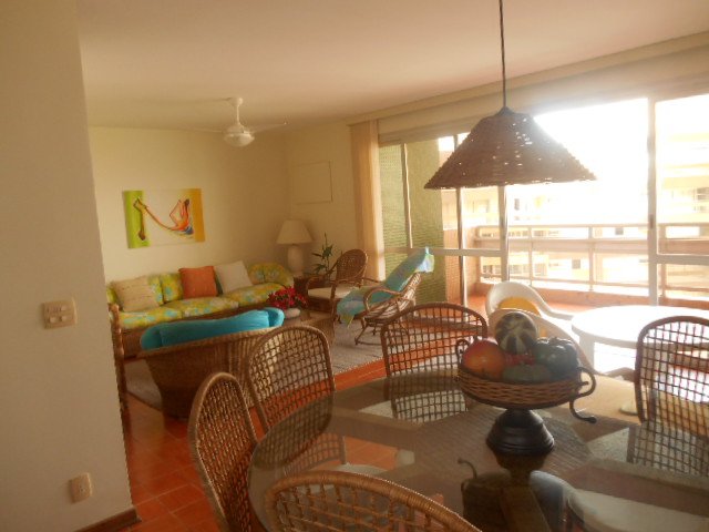 APARTAMENTO A VENDA NO GUARUJÁ, PRAIA DAS PITANGUEIRAS DE FRENTE PARA O MAR com 4 dormitórios (1 suíte), banheiro social, sala para 2 ambientes com varanda, copa cozinha com armários, área e banheiro de serviço, garagem, mobiliado.