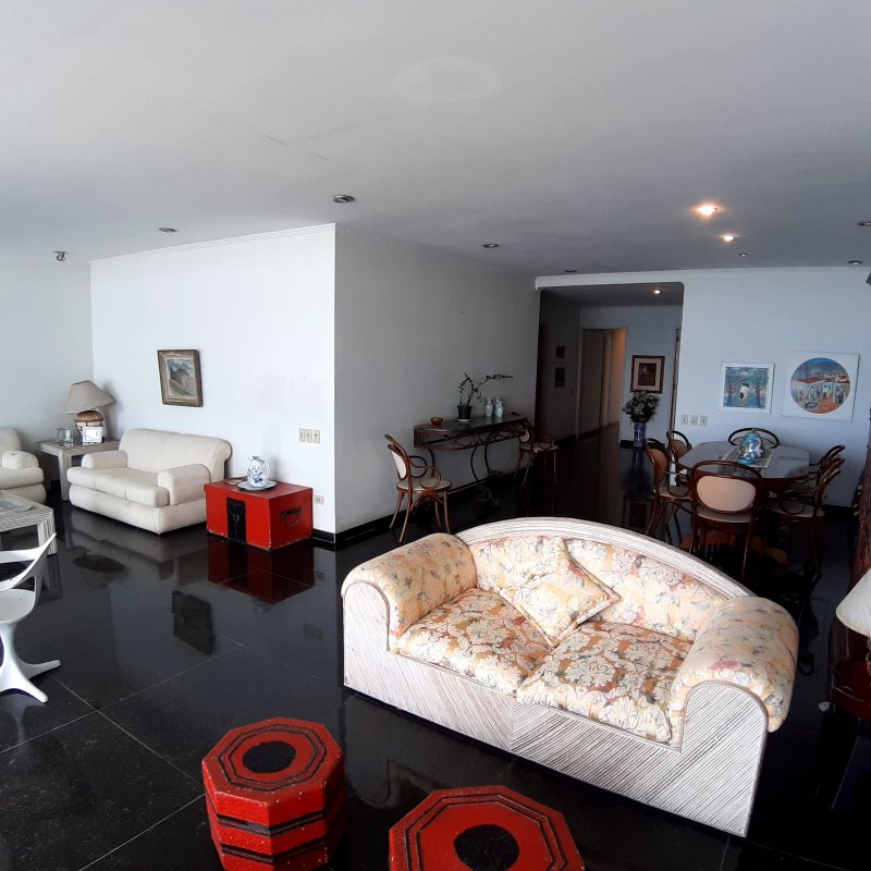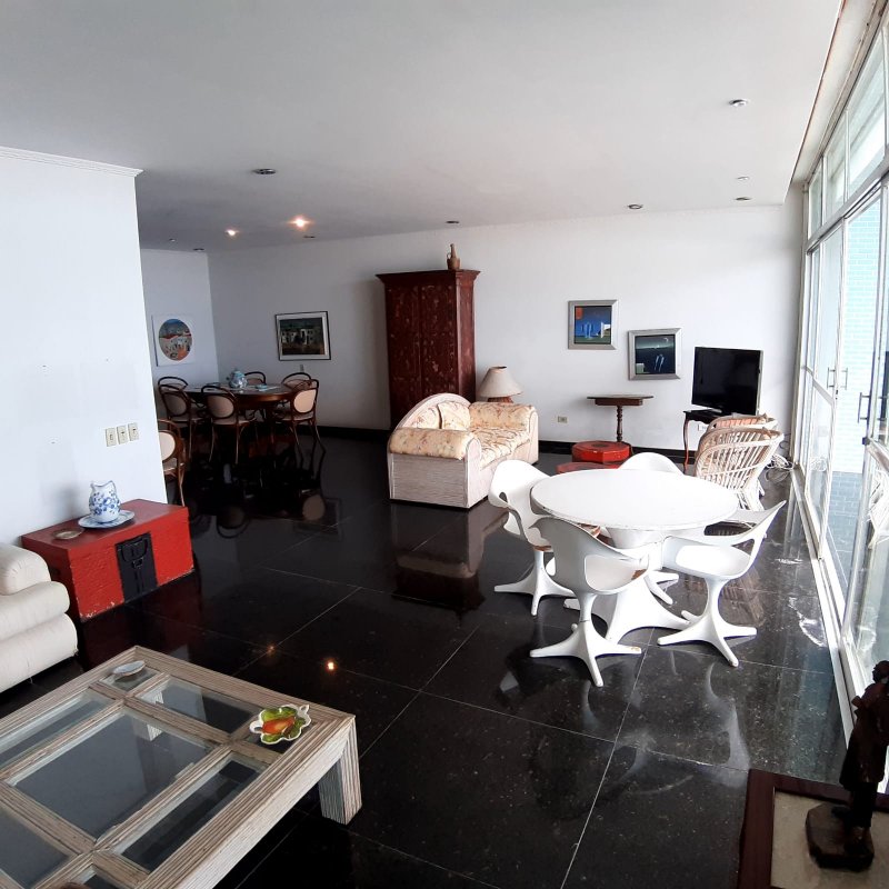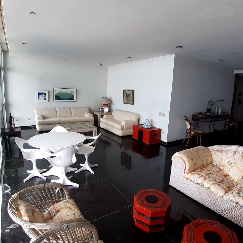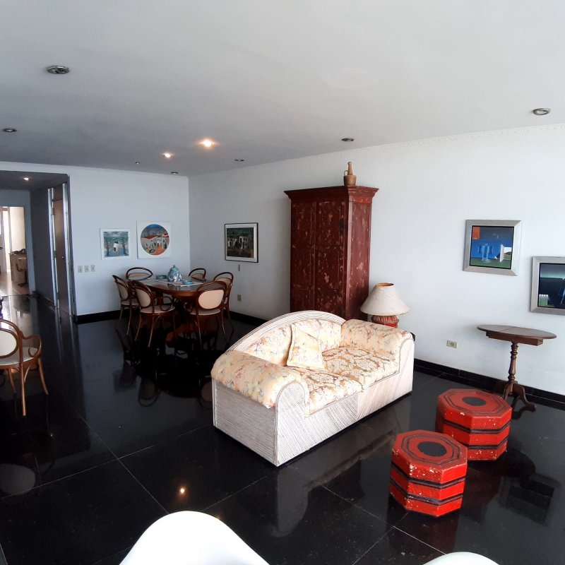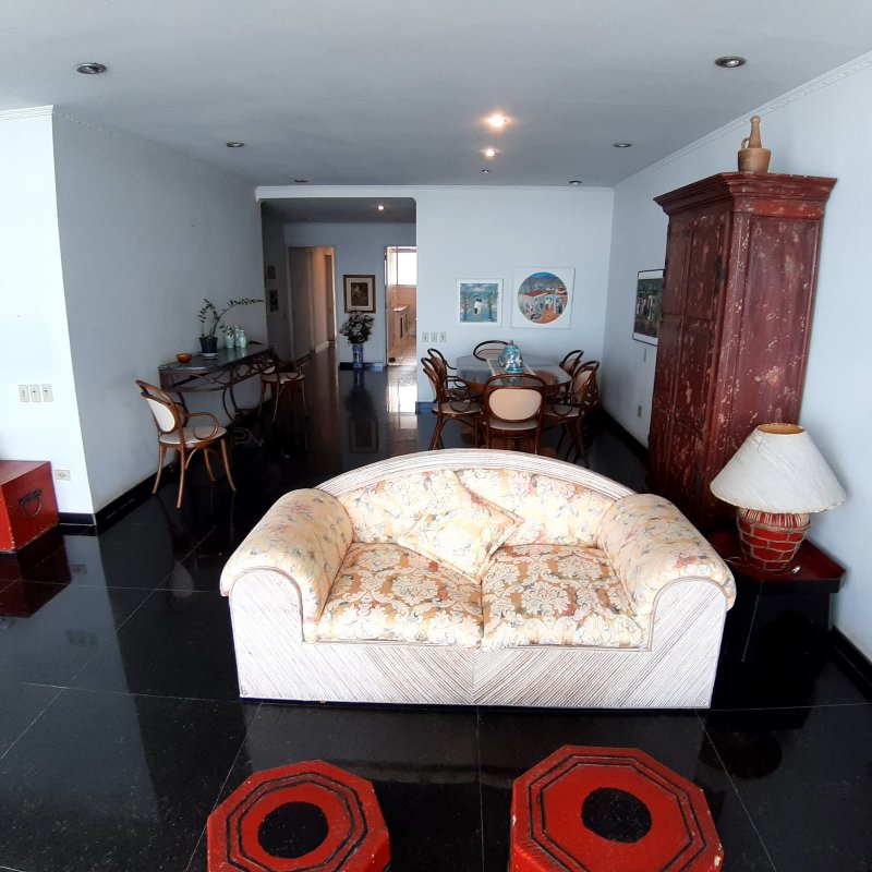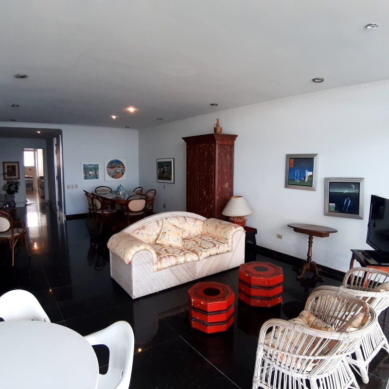 APARTAMENTO A VENDA NO GUARUJÁ, PRAIA DAS PITANGUEIRAS DE FRENTE PARA O MAR com 3 dormitórios (1 suíte) + quarto opcional, banheiro social, sala para 2 ambientes com varanda, copa cozinha com armários, área e banheiro de serviço, garagem, mobiliado.