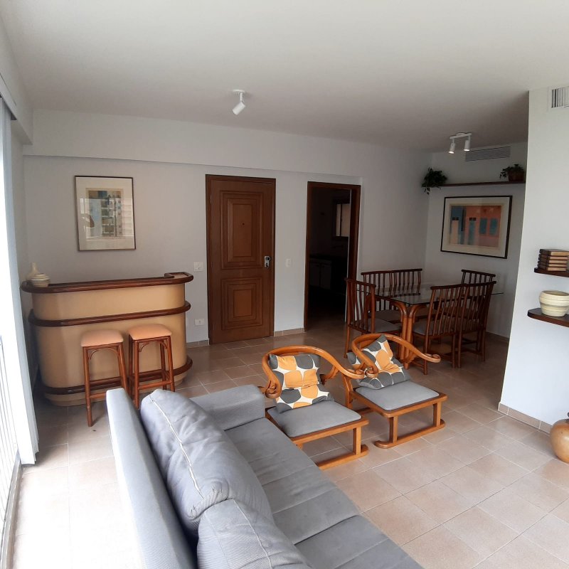 APARTAMENTO A VENDA NO GUARUJÁ NA PRAIA DAS PITANGUEIRAS PRÉDIO COM PISCINA com 4 dormitórios (1 suíte), banheiro social, ampla sala 2 ambientes com varanda mobiliável, cozinha com armários, área e banheiro de serviço, 2 garagens, mobiliado