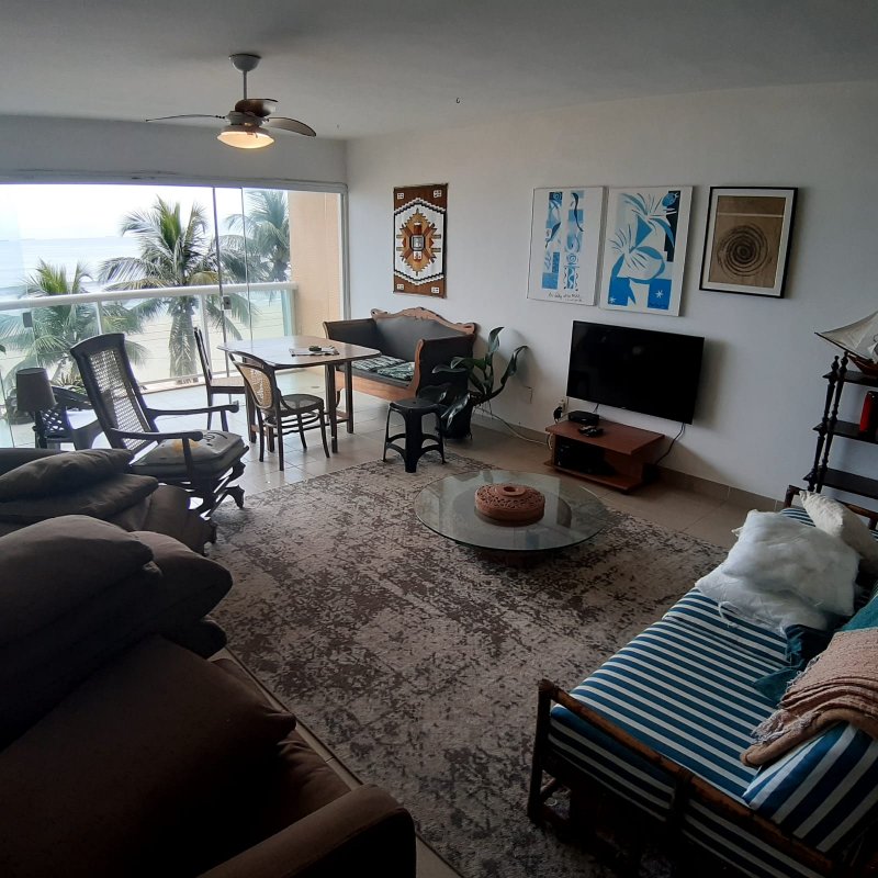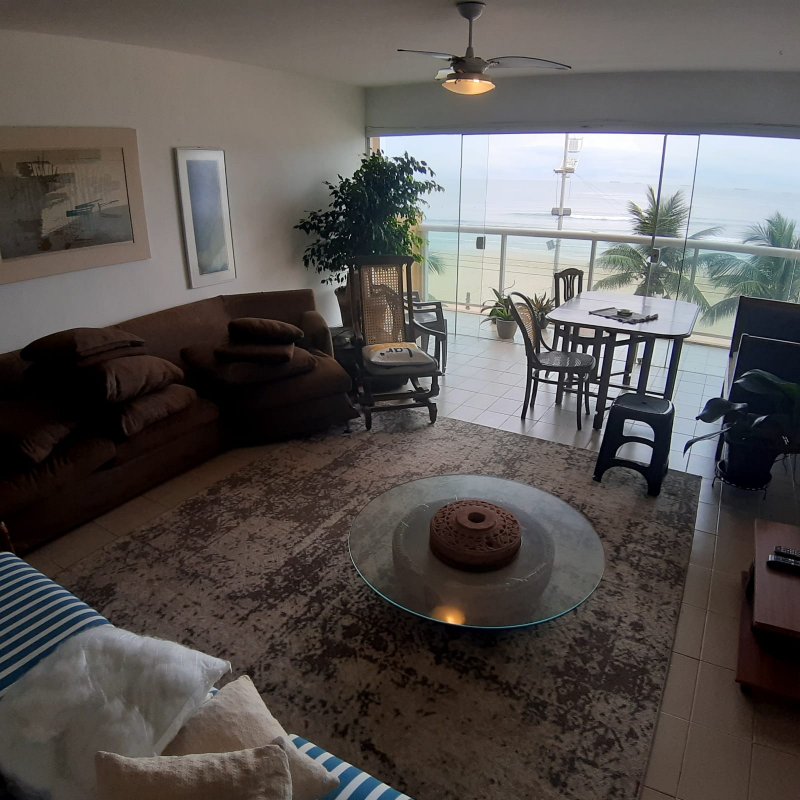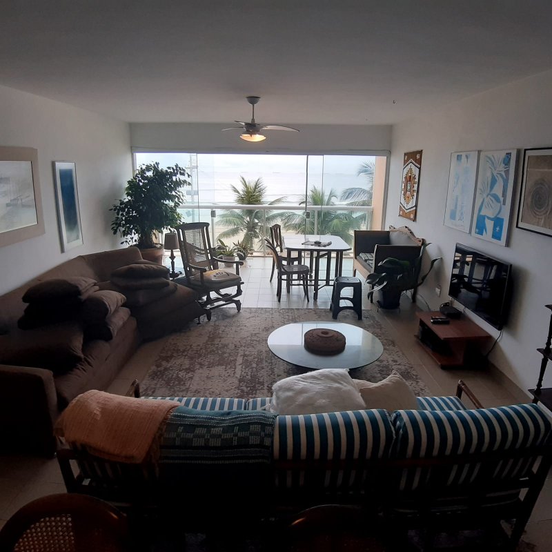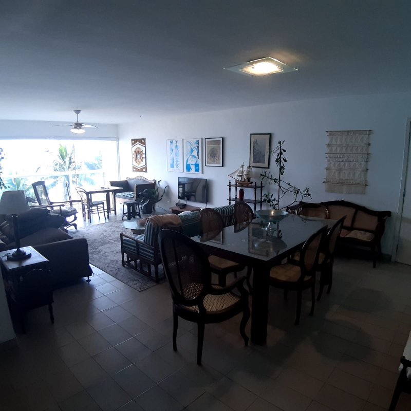 APARTAMENTO A VENDA NO GUARUJÁ, PRAIA DAS PITANGUEIRAS DE FRENTE PARA O MAR com 3 dormitórios (1 suíte) + dormitório opcional, banheiro social, sala para 3 ambientes com varanda, copa cozinha com armários, área e banheiro de serviço, 2 garagens, mobiliado.