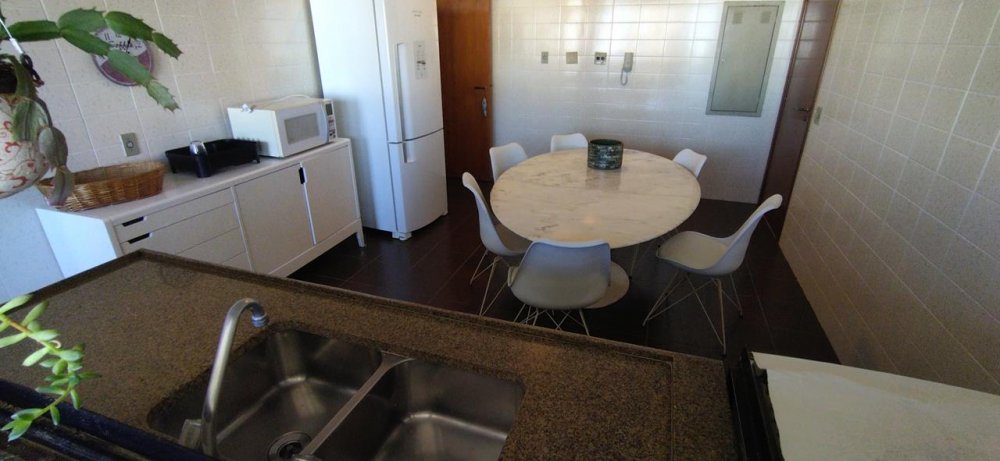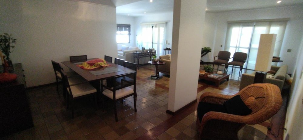 APARTAMENTO A VENDA NO GUARUJÁ NA PRAIA DAS PITANGUEIRAS PRÉDIO COM PISCINA com 4 suítes (1 master com hidromassagem) + suíte opcional, sala para 3 ambientes com varanda mobiliável, lavabo, copa cozinha planejada, área e banheiro de serviço, 3 garagens, mobiliado.