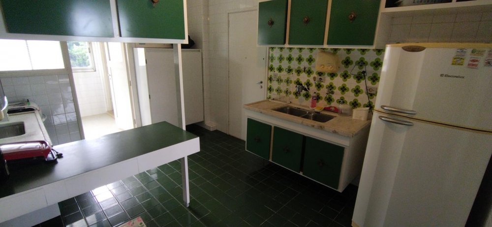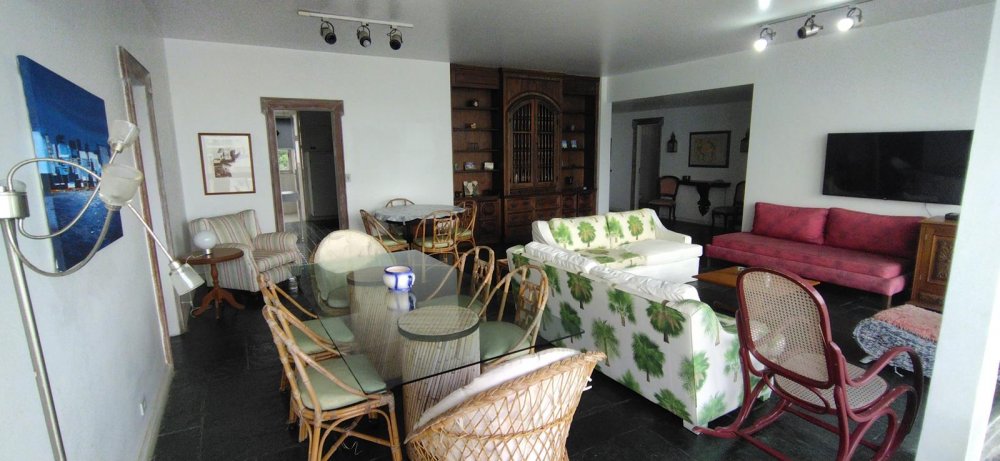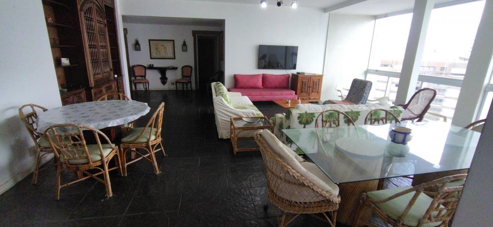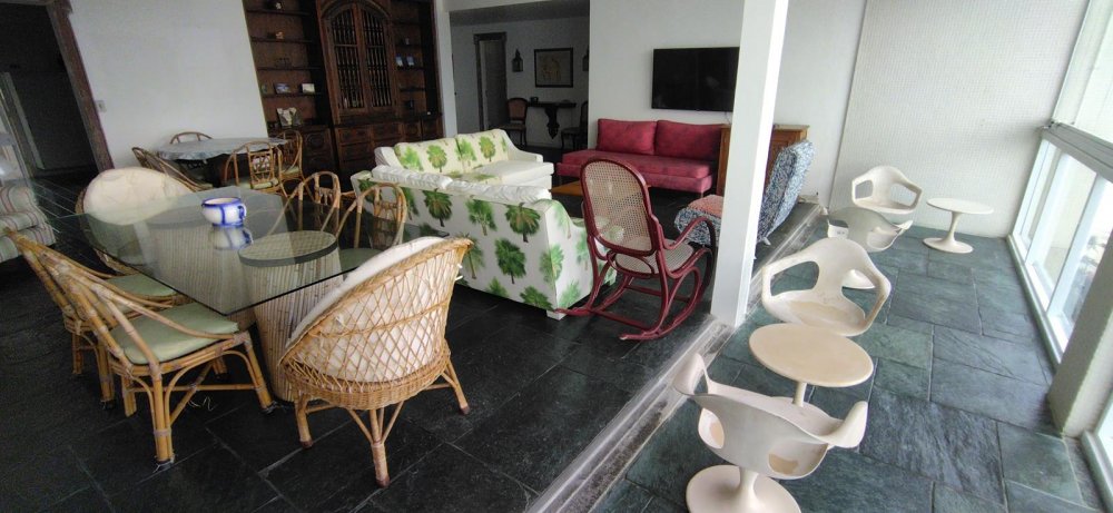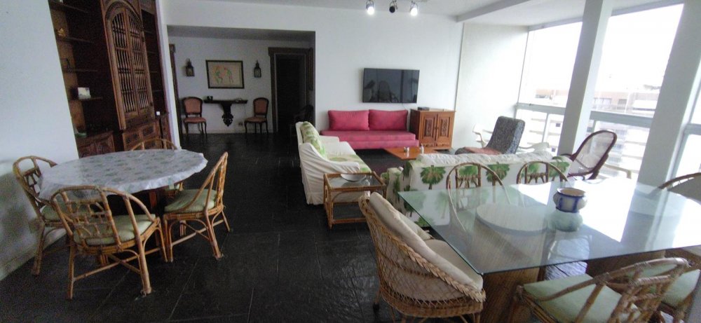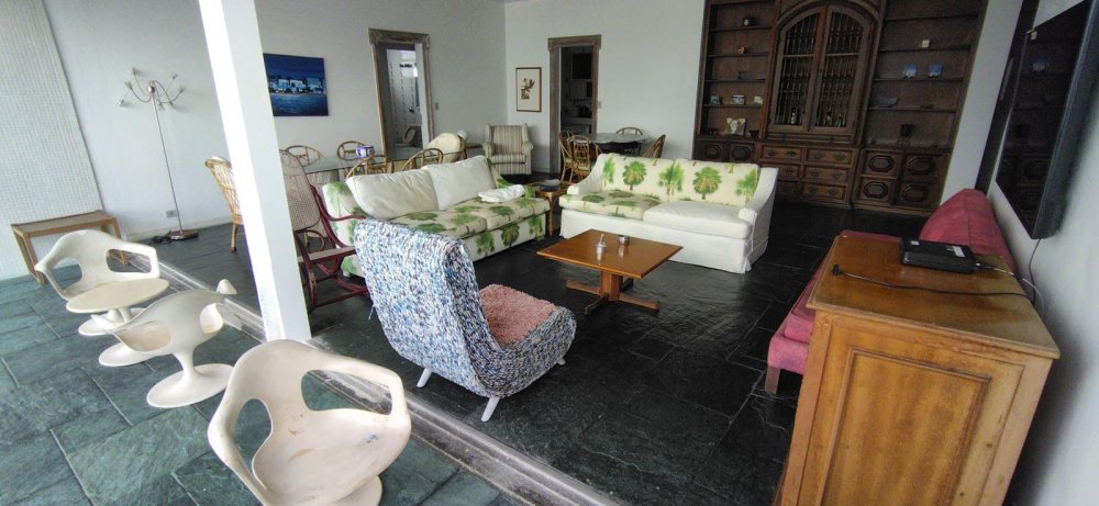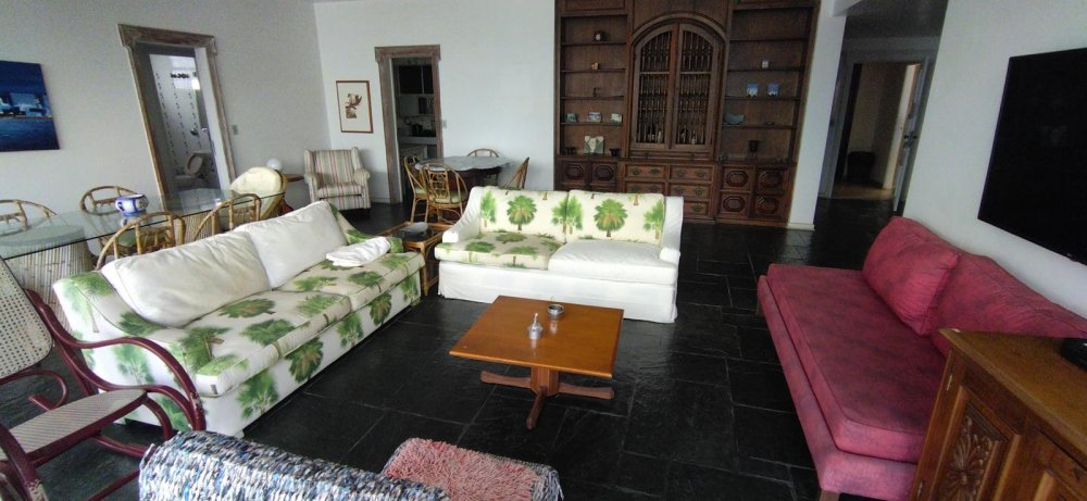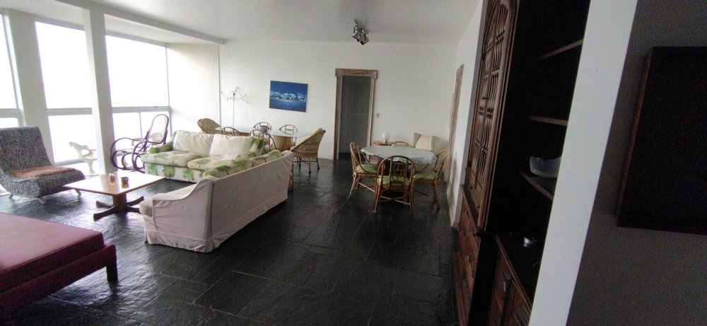 APARTAMENTO A VENDA NO GUARUJÁ, PRAIA DAS PITANGUEIRAS DE FRENTE PARA O MAR com 5 dormitórios + dormitório opcional, 3 banheiros sociais, sala para 3 ambientes com varanda e lavabo, copa cozinha com armários, área e banheiro de serviço, 2 garagens demarcadas, mobiliado.
