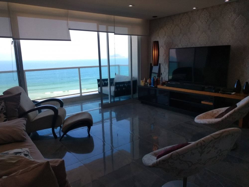 APARTAMENTO A VENDA NO GUARUJÁ, PRAIA DAS PITANGUEIRAS DE FRENTE PARA O MAR com 3 dormitórios (1 suíte) + quarto opcional, banheiro social, sala para 2 ambientes com varanda, copa cozinha com armários, área e banheiro de serviço, garagem, mobiliado.