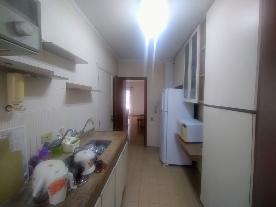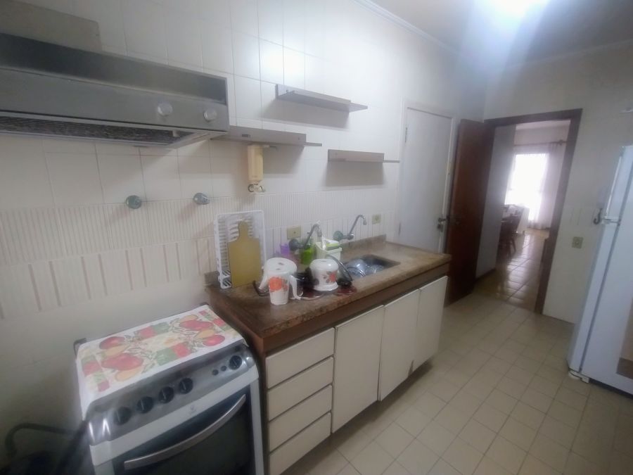 A unidade conta com 3 dormitórios, sendo 1 suíte, e um total de 3 banheiros. A área social é composta por duas salas distintas, proporcionando ambientes de estar e jantar, ampla varanda. O imóvel dispõe de uma área de serviço completa, que inclui banheiro auxiliar.